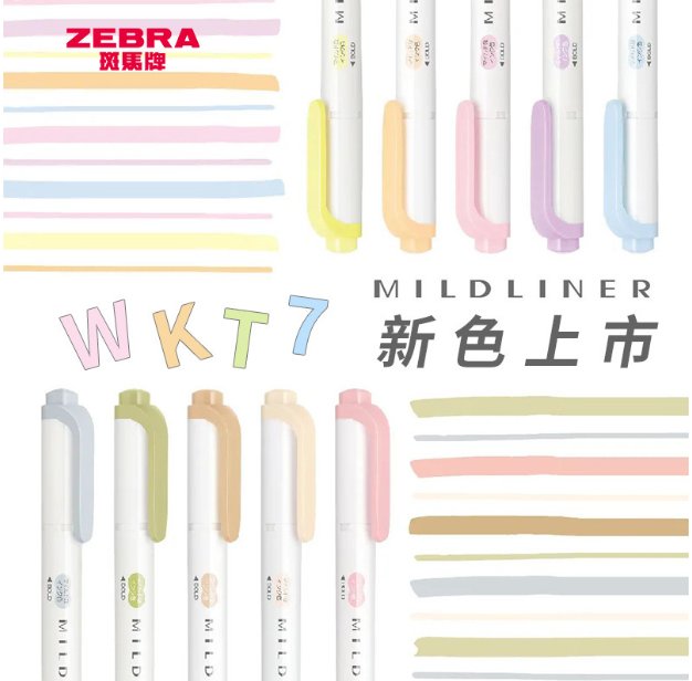 ZEBRA斑马WKT7双头淡色系手帐荧光笔记号笔学生用柔和重点标记笔