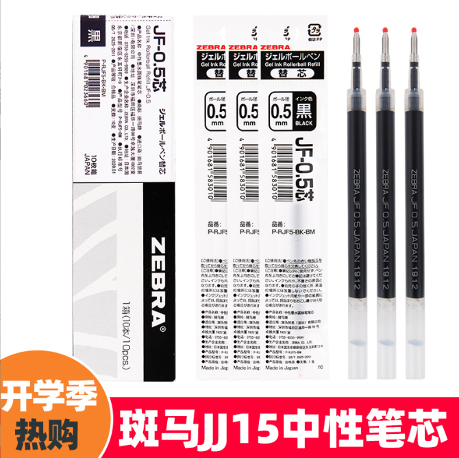 日本zebra斑马中性按动笔芯黑色笔学生水笔替芯