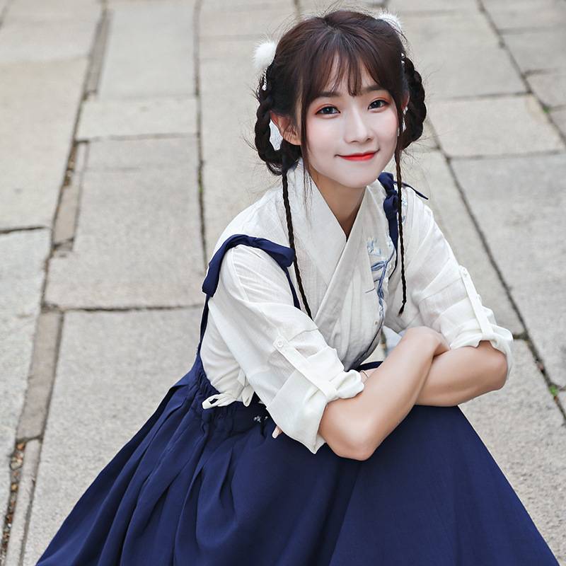 批发文艺范民族风改良汉服女绣花交领上襦背带裙汉元素班服套装秋
