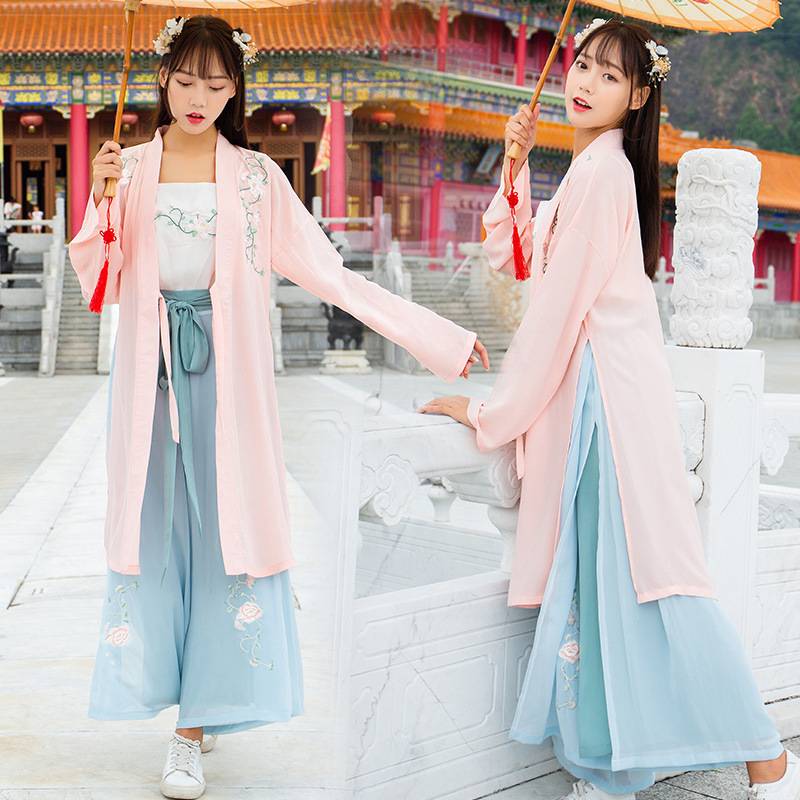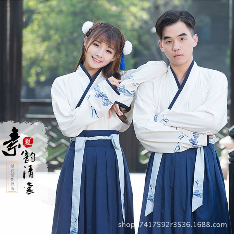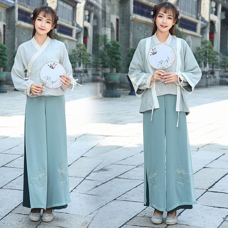 批发中国风改良汉服女 新款汉元素刺绣交领中衣宋裤套装学生服装