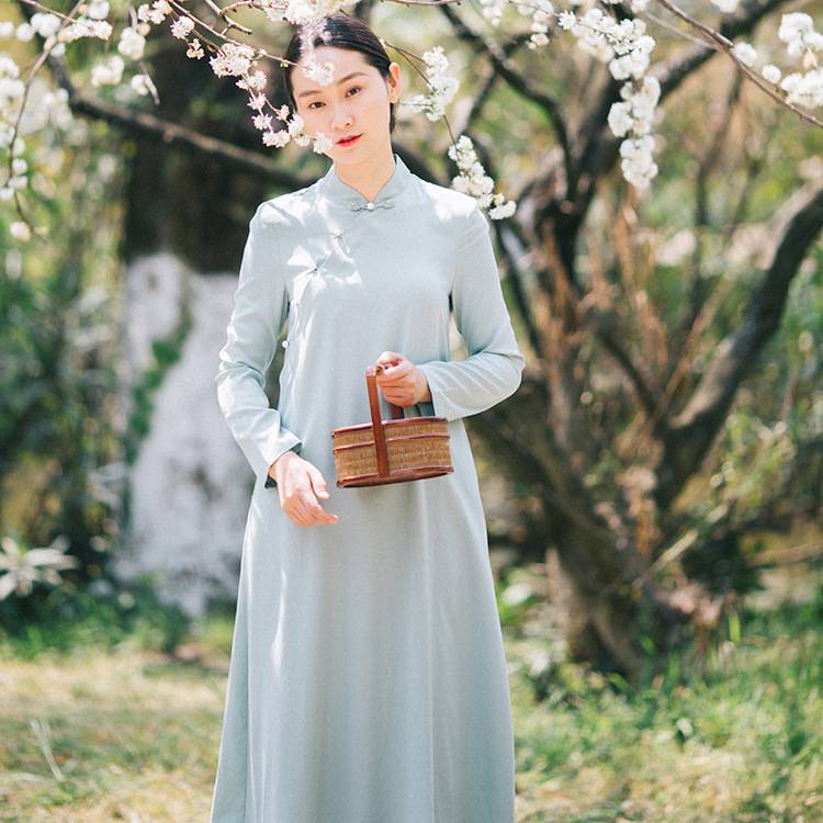 13中国风中式女装复古长袖中长款改良汉服茶人服连衣裙p 17024捌