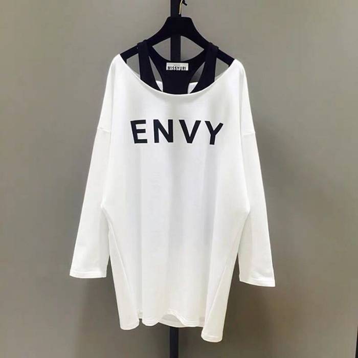 新款春秋装韩版宽松白色t恤长袖中长款套装卫衣打底衫女