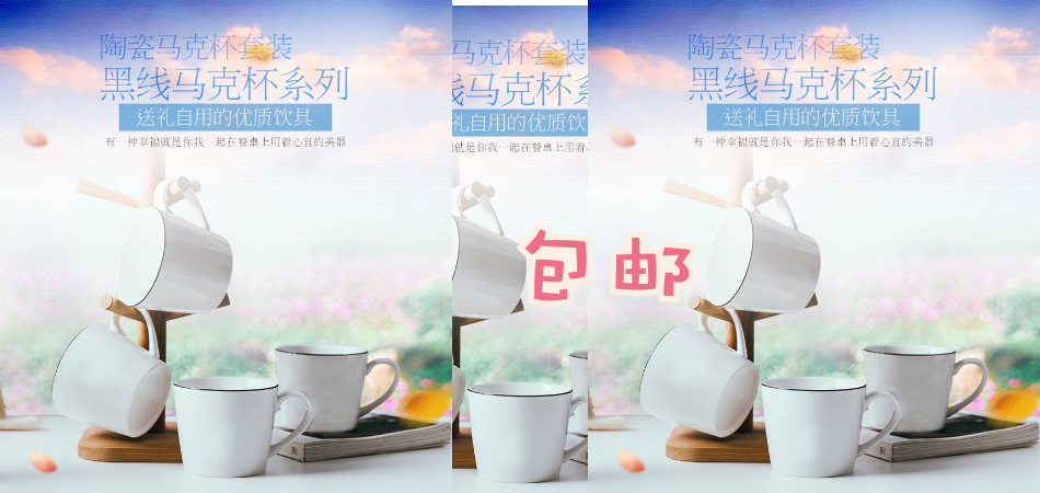 欧式黑线陶瓷水杯 广告促销马克杯子咖啡牛奶早餐杯礼品