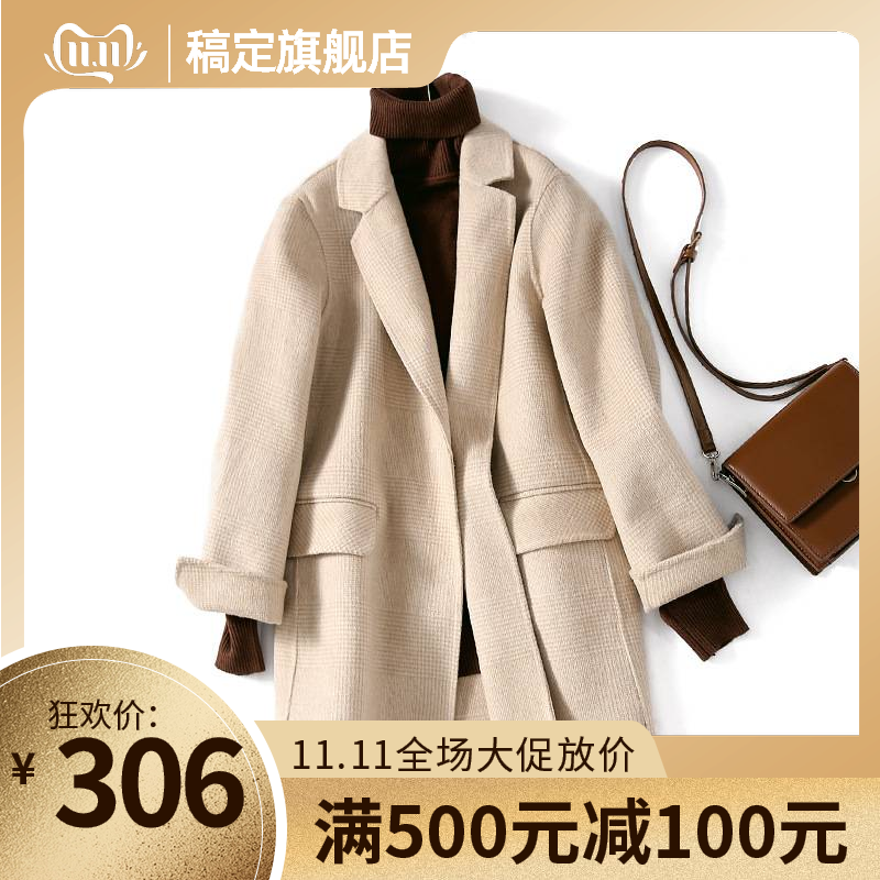 2019新款毛呢外套女装中长款小个子双面呢羊毛绒大衣腰带显瘦