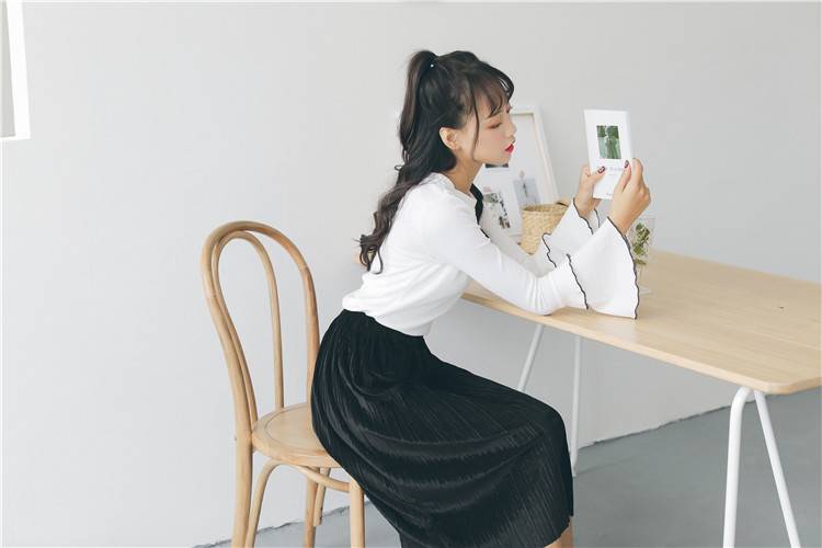 喇叭袖长袖T恤女学生韩版2018新款秋装女装小清新甜美上衣打底衫