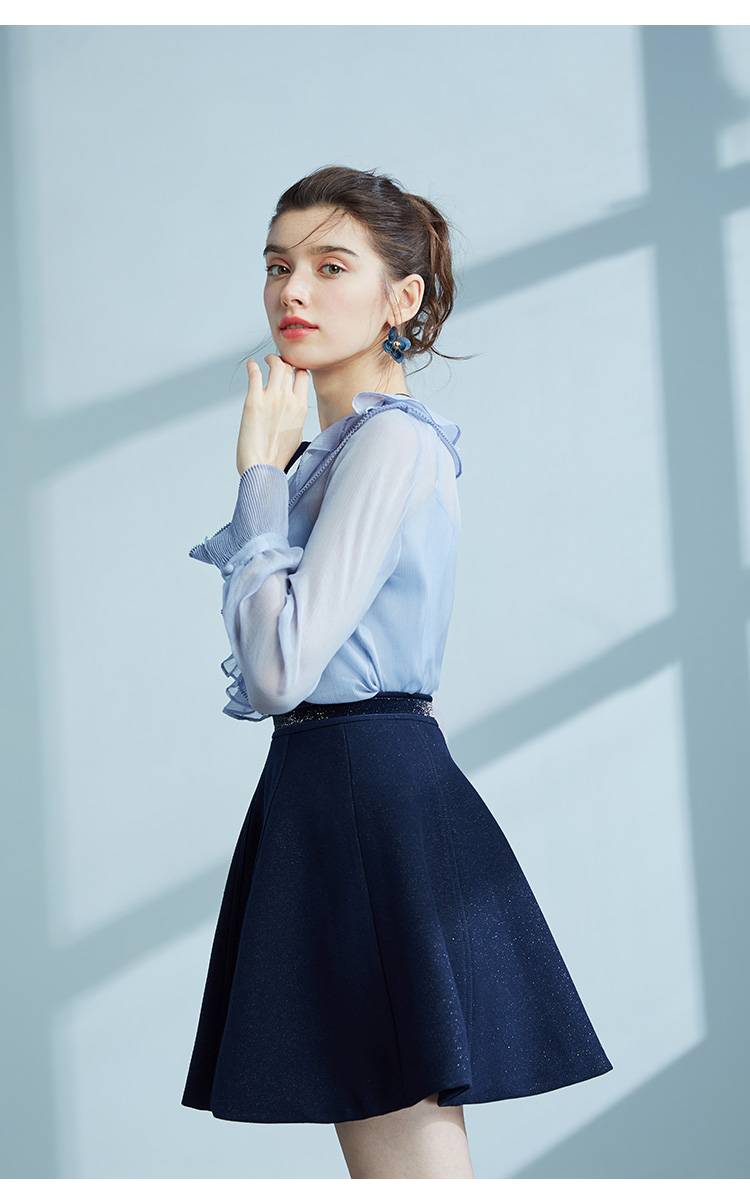 荷叶边蝴蝶结复古法式衬衫女秋季长袖雪纺衬衣韩系气质上衣