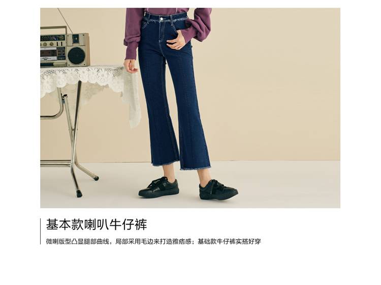 微喇牛仔裤女秋季2018新款宽松喇叭裤做旧毛边长裤子女
