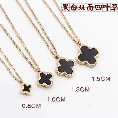 小红书同款经典时尚双面玫瑰金四叶草项链