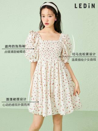 气质复古连衣裙2023新款春女装奶油蜜桃蝴蝶结连衣裙