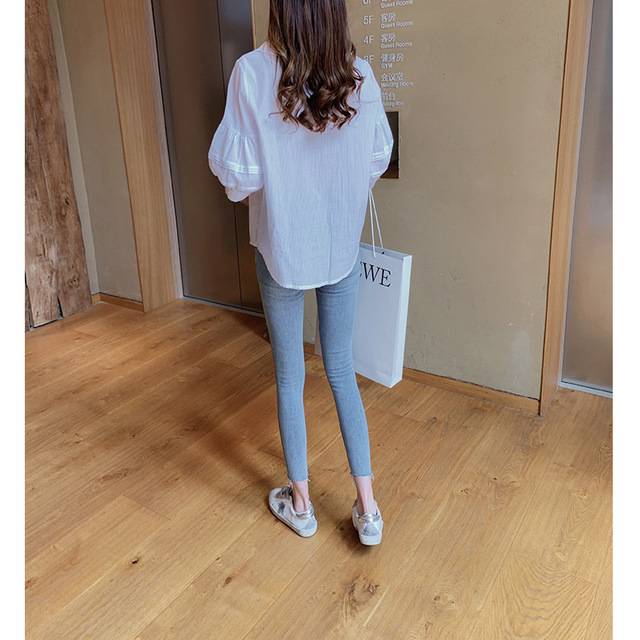 夏装新款时尚气质灯笼袖白衬衫女宽松显瘦娃娃衫韩范衬衣上衣