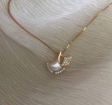 回馈8.5折 轻奢优雅 加粗加重版 通体925银天然母贝银杏叶项链