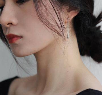 实心纯银水滴 质感925银镀白金镀玫瑰金光面流苏耳坠耳钉女