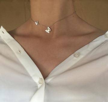 强推!古风与时髦的结合 拉丝蝴蝶 925纯银镀白金拉丝锁骨链吊坠
