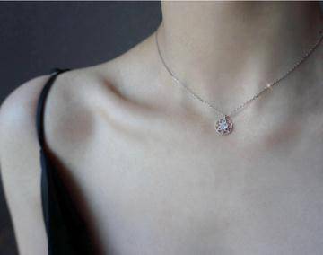 梦幻宝盒简约法式chic 通体925银镀白金镶钻镂空圆盘项链锁骨链