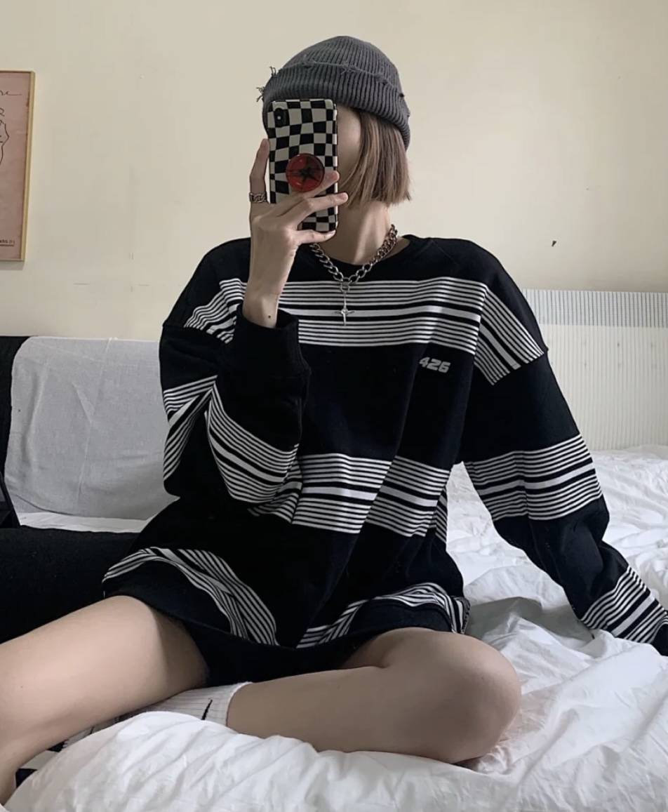 oversize条纹卫衣女ins春秋薄款宽松bf慵懒风hiphop高街美式外套