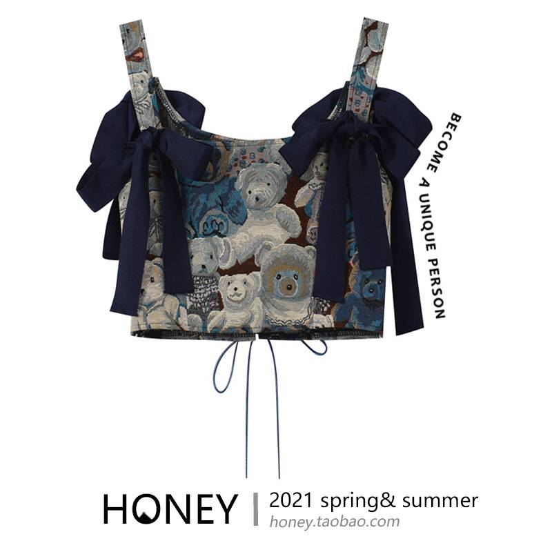 SHIYIYUE【古典小熊】提花吊带背心女夏季蝴蝶结系带外穿短款上衣