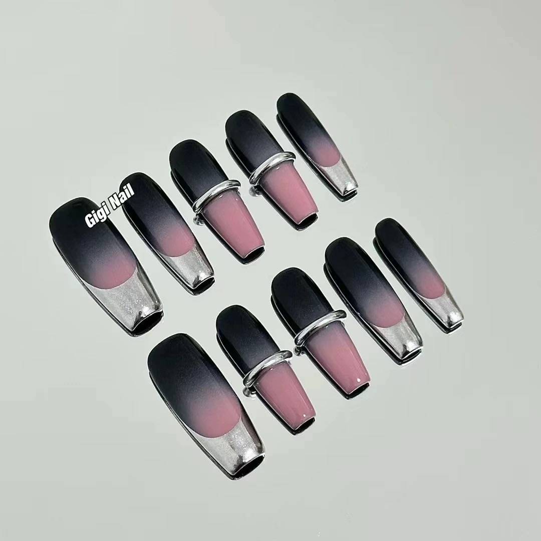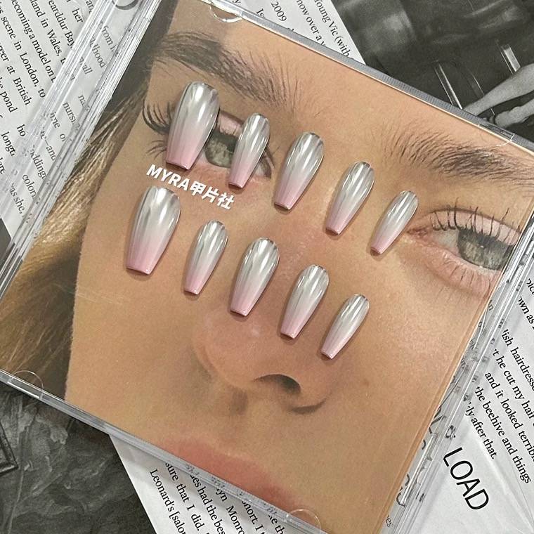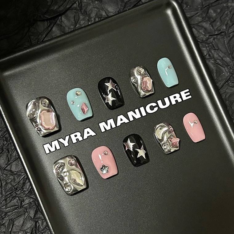 MYRAMANICURE-y2k千禧风辣妹短甲鸳鸯跳色金属风穿戴甲片