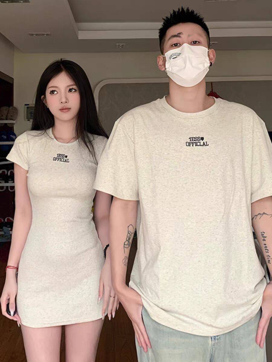 小众设计感情侣装夏季2023韩版短袖T恤女连衣裙法式一裙一衣ins