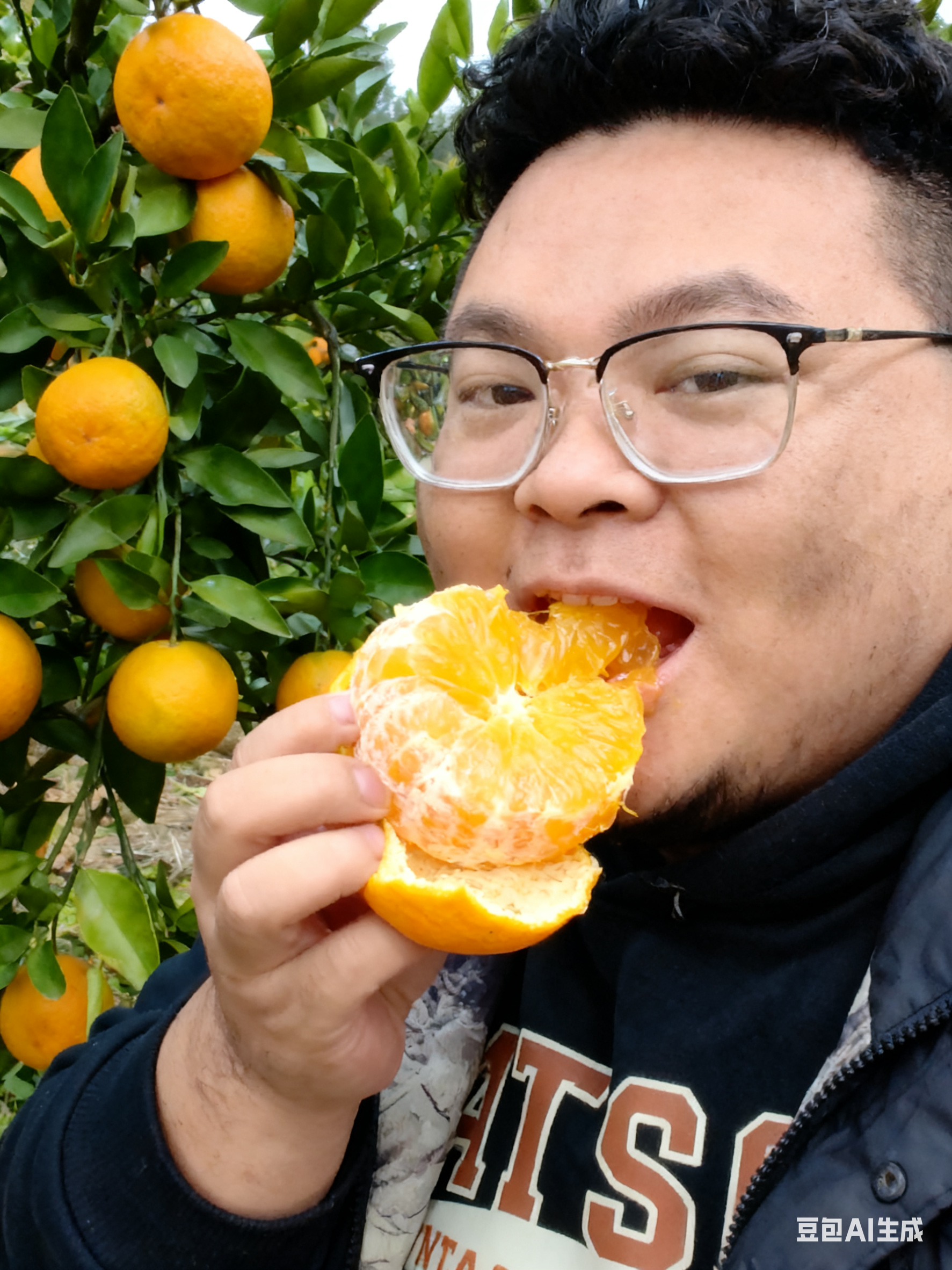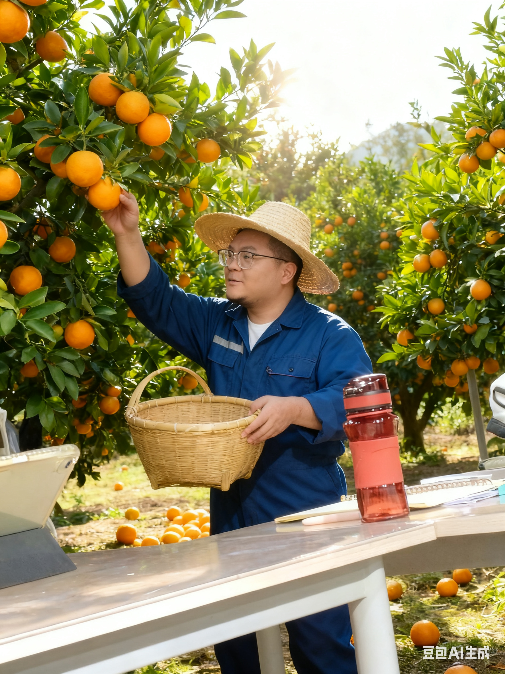 忙碌一天的农民伯伯逆火,劳累了一天在果树旁卖自己种的橘子