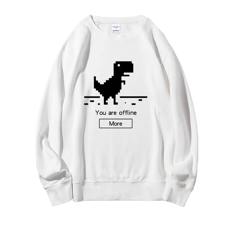 谷歌chrome断网404小恐龙圆领加绒卫衣男潮冬季宽松百搭无帽外套